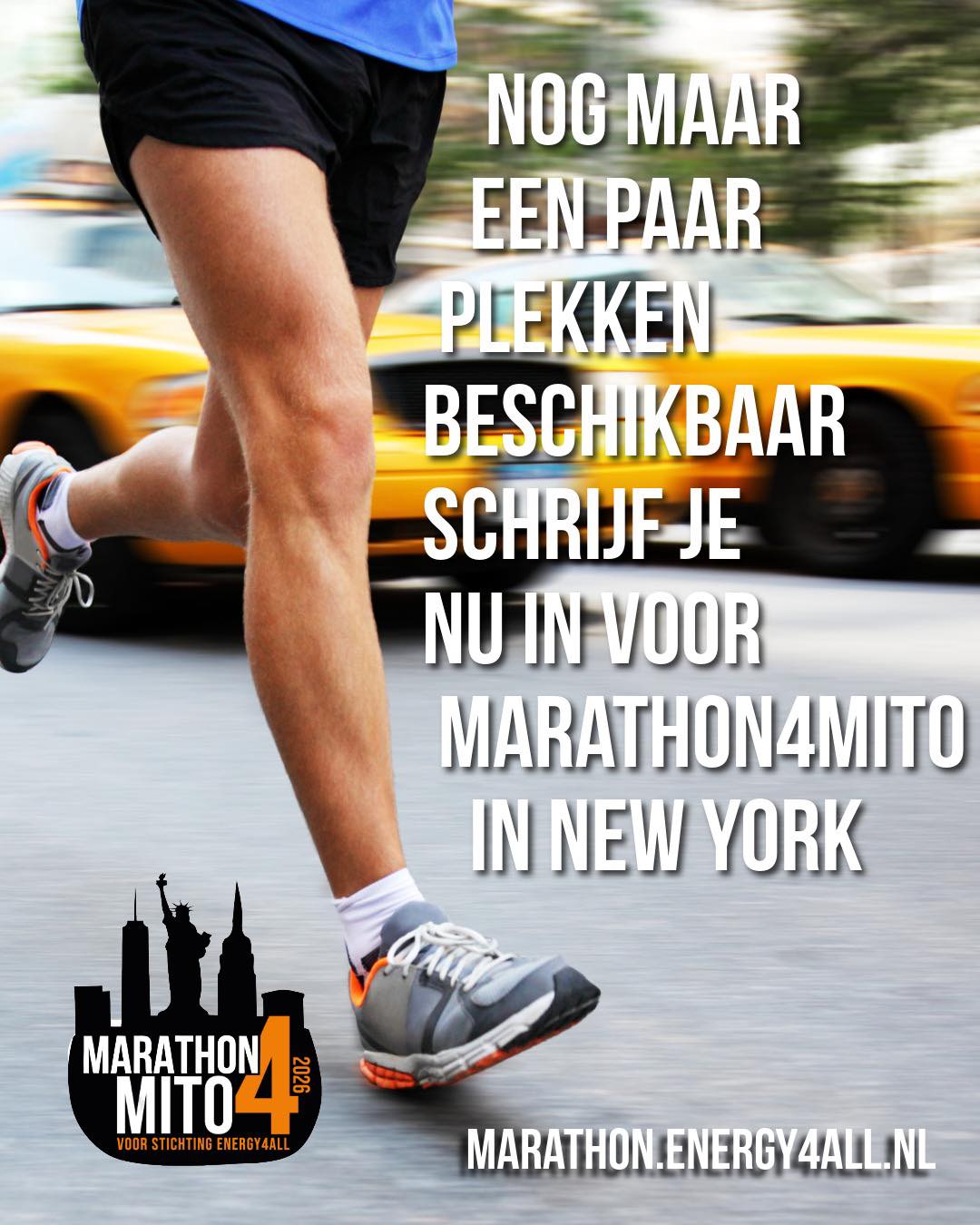 Heb je altijd al de marathon der marathons willen lopen? Dat is de New York City Marathon. Dan is dit je kans! En meteen een hele speciale 50 jaar jubileum editie in 2026. Team Marathon4Mito gaat lopen voor Stichting Energy4All. En jij kunt daarbij aansluiten! Je steunt hiermee het medicijnonderzoek om energiestofwisselingziekten te stoppen. Jouw energie geven voor kinderen die een tekort aan energie hebben. Op dit moment zijn er nog een aantal startbewijzen beschikbaar, inclusief reis en begeleiding van TUI Sports, vol=vol! SCHRIJF JE NOG SNEL IN! En loop mee op 1 november in New York. Je kunt je ook eerst aanmelden als geïnteresseerde en we sturen je extra informatie https://marathon.energy4all.nl/